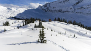 The past week didn’t offer much in the way of views but the skiing was fantastic. 35 cm over the week and temps -8 to 0 c meant the tree skiing was exceptional. As a tease on the final day the sun came out and the temps shot way up. It made for a great final happy hour.